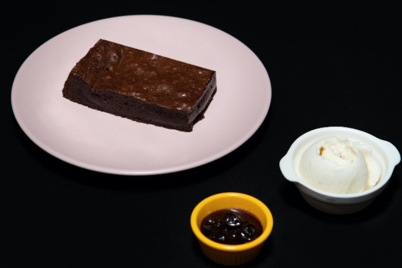 Kahvenin yanında canım çikolata istedi ama çok da kalori almak istemiyorum diyenler için yoğun kıvamlı küçük parça ev yapımı browni. Yanında ev yapımı vişne sos ile servis edilir.