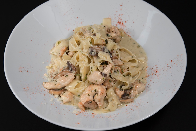 140 gr. tavuk, kremalı mantar, fesleğen ve parmesan ile