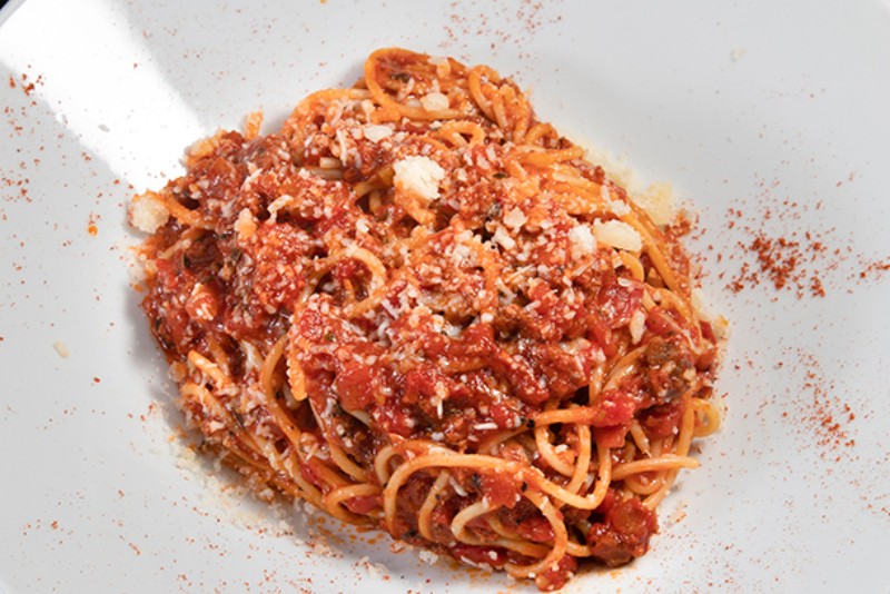 70 gr. dana kıyma, domates sos, kekik, fesleğen ve parmesan ile